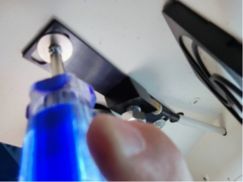 - Keeping the nozzle in place, tighten the two screws.