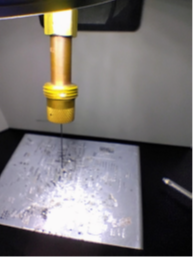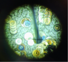 - Looking through the scope, hold the nozzle and move it slightly forward. Adjust it so the end of the wire is in the cross-hairs