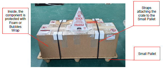 2.Place the crate on a small pallet and secure it with straps. (See example in the photo below).