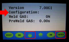 - Select the “Configuration” screen using the down arrow key, then press the enter key to display the configuration screen; the cursor should be next to “configuration” before the enter key is pressed. See image 4 for reference.