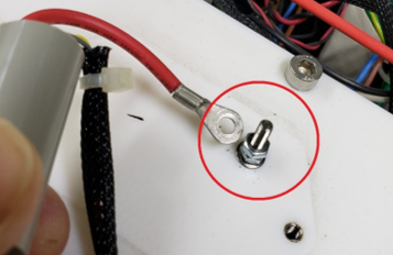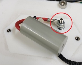 - With pliers, hold the lower nut of the screw where the red wire of the Trigger Transformer is connected, and with another pair of pliers, loosen the upper nut to disconnect the Trigger Transformer