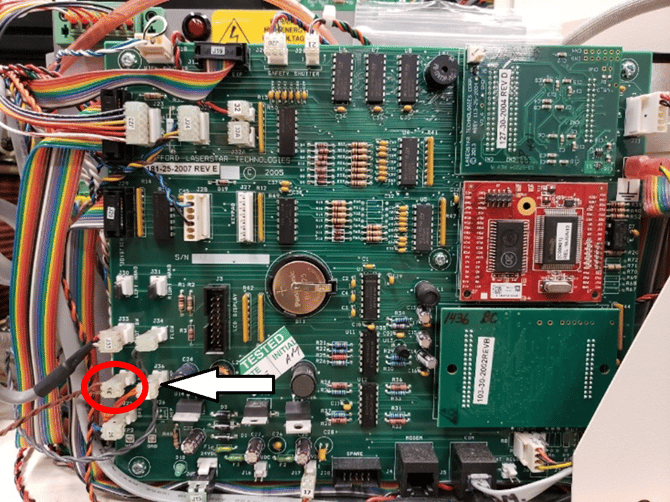 Disclaimer: This procedure is for troubleshooting only. The Laser should not be used with the Jumper on the Control Board. LaserStar is not responsible for any damage caused if you choose to use the Laser with the Jumper on J35.